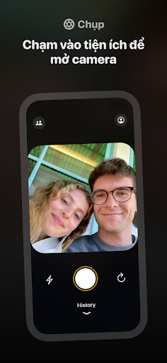 3. Để chia sẻ ảnh với họ, hãy chạm vào tiện ích, chụp ảnh bằng camera, và nhấn nút gửi đi! Nó sẽ xuất hiện ngay trên Màn hình chính của người kia