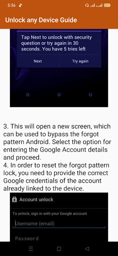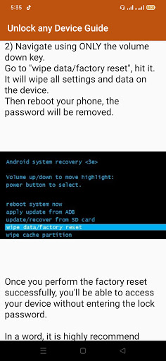 Ứng dụng này cung cấp hướng dẫn để mở khóa bất kỳ thiết bị Android nào và các thiết bị khác. Mở khóa bất kỳ thiết bị nào bằng cách xóa mật khẩu, thiết lập lại cứng, mở khóa mà không cần tài khoản và nhiều tính năng hơn. Mọi người cần bảo đảm dữ liệu hoặc ngăn chặn việc sử dụng trái phép dữ liệu của mình trong phương thức era.one hiện đại này để bảo vệ dữ liệu điện thoại của bạn là khóa màn hình điện thoại của bạn theo mẫu, mã PIN hoặc theo cách khác như nhận dạng khuôn mặt. Ứng dụng này cung cấp hướng dẫn về giải pháp các vấn đề về khóa thiết bị hoặc mở khóa. Quá trình mở khóa hướng dẫn mở khóa.
