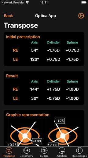 1. Transponse: Tính toán transfonse của công thức Spherocylindric và cũng đại diện cho thập giá quang với sự cung cấp của các quyền hạn.