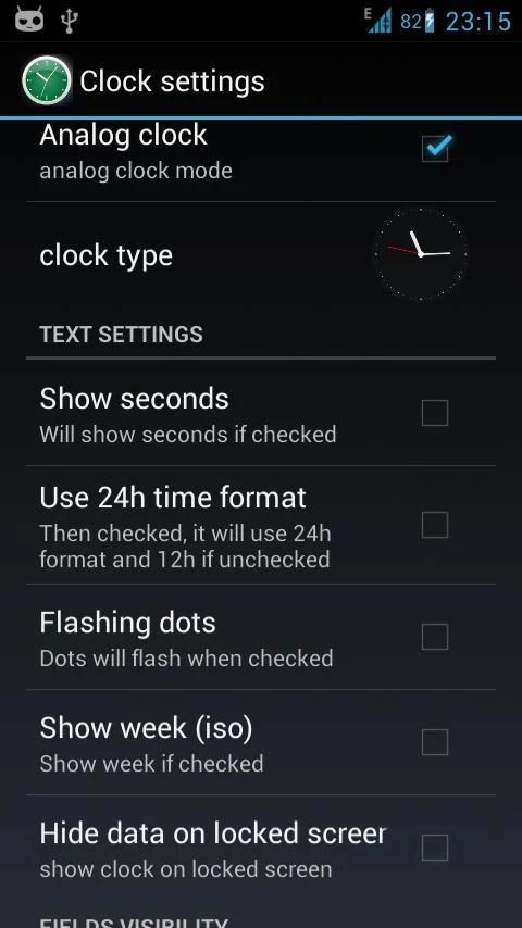 - text or analog clock mode