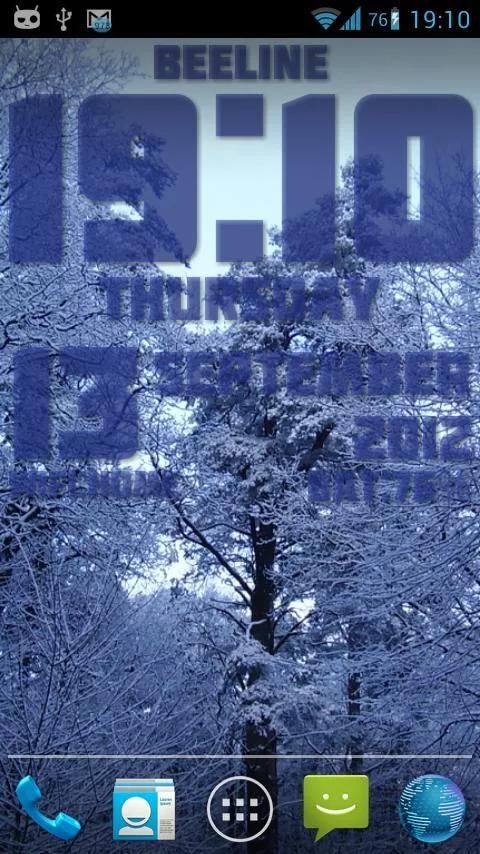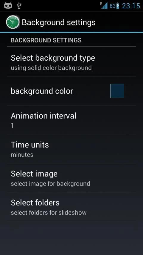There are two modes for Live wallpaper - text mode that shows you the time, date, battery, operator name and wlan SSID; and graphic clock mode with animated clock. Analog clocks available of a different design and text mode allowes customization of color and font.