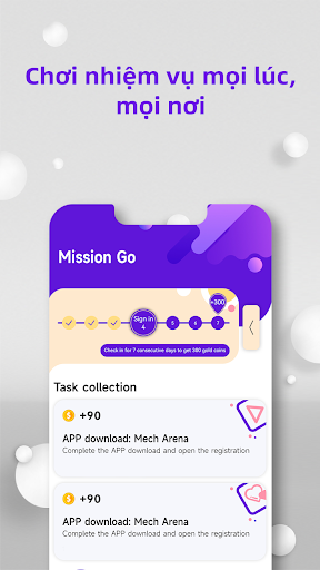 Mission Go có nhiều loại nhiệm vụ kiếm tiền vàng, chẳng hạn như: bảng câu hỏi, trình diễn trò chơi, tiền thưởng đăng nhập, sẽ được cập nhật và phát hành mỗi ngày. Ngoài ra, việc hoàn thành nhiệm vụ trên Mission Go rất thuận tiện; Bạn chỉ cần một chiếc điện thoại di động để làm điều đó và sau khi hoàn thành, bạn có thể nhận được những đồng tiền vàng cao để đổi lấy phần thưởng rút tiền.