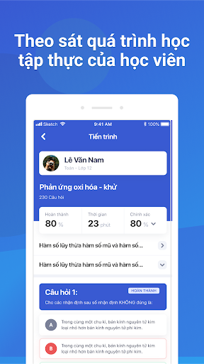- Ngay khi giao bài tập, thầy cô sẽ có thể dõi theo quá trình học tập thực của học viên trên ứng dụng. Nhận thấy học viên đã sai những lỗi gì và đã học trong bao lâu.