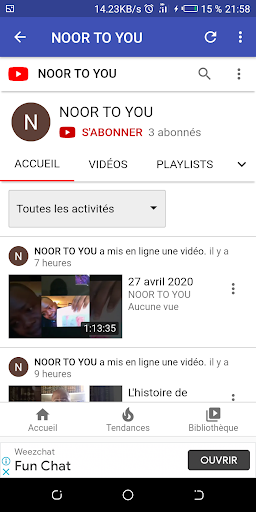 sur cette application vous trouverez un lien vers la chaine youtube de Noor To You