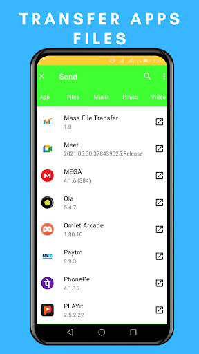 Mass Truyền tệp Xender là một ứng dụng kết nối hai hoặc nhiều điện thoại thông minh để chia sẻ ảnh, ứng dụng và phương tiện khác. Xender chuyển tập tin hàng loạt mới này có sẵn trên bốn hệ điều hành và trong 22 ngôn ngữ. . Năm 2013, nó hỗ trợ nhiều ngôn ngữ hơn và tên của nó đã được đổi thành Xender.