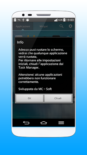 RTP - Rotate The Phone è l'applicazione che fa per te! Con RTP potrai ruotare qualsiasi schermata con un solo tocco. L'attivazione dell'applicazione sarà sempre visibile nel pannello delle notifiche, e potrai accedervi in qualunque momento.