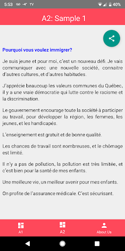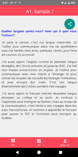 Ứng dụng này giúp bạn vượt qua kỳ thi TCF Gold Tef. Mục tiêu ở đây là bạn có ý tưởng về cách trả lời câu hỏi miệng. Ứng dụng này cũng giúp bạn có một cuộc phỏng vấn tốt hơn nếu bạn có kế hoạch nhập cư vào Quebec.