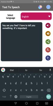 User can clear screen to re create his/her new text in order to convert it into voice. User can copy text to clipboard and share it to other social media apps as well.