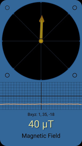 Đây là một máy dò từ trường chính xác, có một chỉ báo ba chiều hiển thị hướng thực của trường;Nó cũng hiển thị một biểu đồ đơn giản của từ trường (tổng cường độ) so với thời gian (khoảng 20 giây ở 10 mẫu / giây).Ứng dụng của chúng tôi (hướng dọc, Android 5 hoặc mới hơn) sẽ chỉ hoạt động trên các máy tính bảng và điện thoại thông minh có cảm biến từ tính.Bạn có thể sử dụng từ kế để đo và nghiên cứu từ trường được tạo ra bởi các nguồn khác nhau (ví dụ để xác minh tỷ lệ của nó với khoảng cách), như một máy dò cho nam châm và kim loại và dưới dạng chỉ số cho trường địa từ của Trái đất.