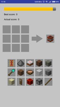 With this app you can check minecraft crafting receipes. And check your knowledge with crafting quiz.