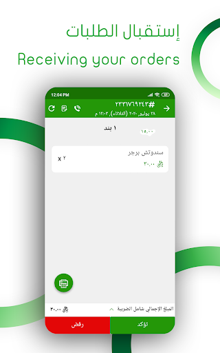 - يصل اليك تنبية بالطلب الجديد يمكنك القبول بعد القبول سيقوم النظام بارسال اليك مندوب لاستلام الطلب وتوصيلة للعميل