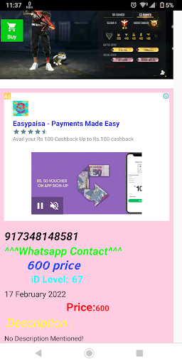 Đây là ứng dụng tài khoản trò chơi. Bạn có thể nhập vào ứng dụng này và mua bất kỳ tài khoản nào bạn thích. Nếu bạn có bất kỳ câu hỏi / đề xuất / vấn đề nào, sau đó liên hệ với chúng tôi. Cảm ơn