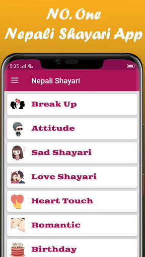Đây là một trong những bộ sưu tập hay nhất của tiếng Nepal Shayari, ứng dụng love shayari hoàn toàn miễn phí và không cần kết nối internet. Tình yêu là một trong những phần quan trọng của cuộc sống con người để chia sẻ cảm xúc của họ với một số người, chúng ta phải cần một văn bản thích hợp Bằng tiếng Nepal, tiếng Anh và tiếng Hindi, được gắn liền với cảm xúc của chúng tôi vì đây là ứng dụng tốt nhất và phù hợp để bạn chỉ cần sử dụng và chia sẻ cuối cùng cảm xúc.