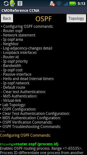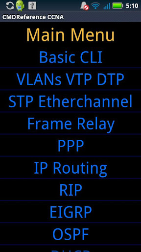 CMD Reference CCNA Free can help Cisco networking academy students and certification candidates learn and review core Cisco networking configuration fundamentals. This command reference includes the specific Cisco IOS commands used to configure Cisco routers and switches. Brief narration explaining many of the commands is also provided. Utilizing CMD Reference CCNA Free in conjunction with your primary training source can be very beneficial with retention and comprehension of the subject matter.This app was design for quick and easy access to valuable core reference information It is meant to supplement NOT replace your primary information sources, whether that be via books videos, classrooms, boot-camps, Cisco documentation, or teachers and mentors. Router IOS commands are based on Cisco IOS 12.4T and Catalyst switch commands are based on Cisco IOS Release 12.2(44)SE. Please consult Cisco's documentation for your particular router/switch model IOS version running in your lab or production environment.CMD Reference CCNA FreeVersion 1.0.6Copyright © 2012-2013Network Technology Tutorwww.networktechnologytutor.comThis app was developed by Network Technology Tutor. All rights reserved. No part of this application may be reproduced or distributed in any form or by any means without the prior written permission of Network Technology Tutor. This material is not endorsed by, sponsored by, nor affiliated with Cisco Systems, Inc. Cisco, Cisco Systems, CCNA, CCNP, CCIP, CCIE are trademarks or registered trademarks of Cisco Systems, Inc. Disclaimer: While every effort has been made to ensure that all material is as complete and accurate as possible, the enclosed material is made available for general educational purpose. It is presented on an “as is” basis, NO warranty of any kind is provided or implied. Neither the author, the developer nor Network Technology Tutor assume any liability or responsibility to any person or entity with respect to loss or damages incurred from the use of this software.