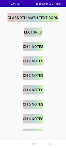 Trên ứng dụng này có sẵn lớp học toán thứ 9 (Nineth) Toán học văn bản Punjab, cuốn sách chính, ghi chú và bài giảng của tất cả các chương sắp xếp khôn ngoan. CH 1 CH2 CH3 CH4BR> CH6 CH7 CH8 CH9 CH10