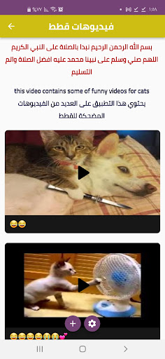 يحتوي تطبيق Funny’s video for cats على فيديوهات مضحكة للكلاب وللقطط و فيديوهات مضحكة للقطط فقط و فيديوهات مضحكة للقطط تتكلم