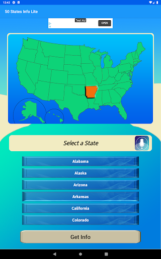 Ứng dụng này sẽ cung cấp cho bạn thông tin về 50 tiểu bang của Hoa Kỳ.Sử dụng nhận dạng giọng nói để chọn các trạng thái.