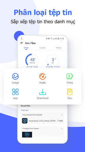🌐Nox Files là ứng dụng quản lý tập tin và bộ nhớ điện thoại hữu hiệu cho Android. Miễn phí, nhanh gọn, tiện dụng và hỗ trợ đầy đủ tính năng của app quản lý dữ liệu điện thoại chuyên nghiệp.