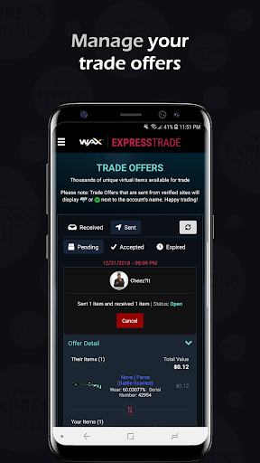 • Automatically accepts case-opening trade offers (only when the app is open/minimized to avoid user conflicts - e.g. site development)