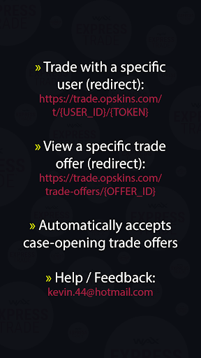 • Trade with a specific user (redirect): https://trade.opskins.com/t/{USER_ID}/{TOKEN}