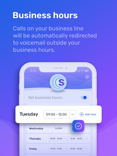 - Business hours: Calls on your business line will be automatically redirected to voicemail outside your business hours. No more customers calling late at night.