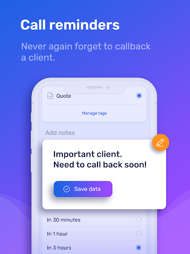 - Call reminders: Never again forget to callback a client.