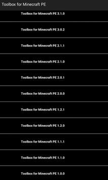Toolbox for Minecraft PE is a launcher/modification for Minecraft: PE (MCPE) that allows you to give yourself items (just like in the popular Too Many Items modification), potion effects, change gamemode, set health, time, weather, enchant items, spawn, remove or set health of all entities of a certain type, see valuable blocks using a special mode called X-Ray, and much more!