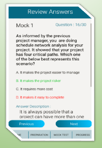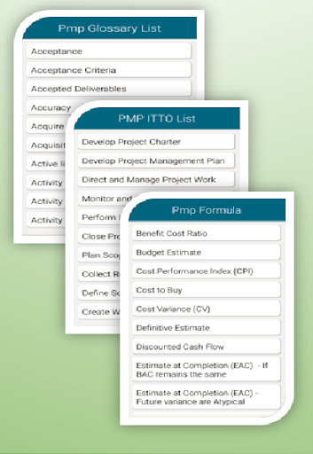 >>>There is no need to refer any other study materials to refer the PMP / PMBOK concepts while using the Q&A as all the needed Study materials are already embedded into the App itself.