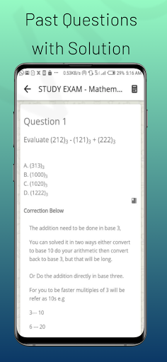 ii) Quiz Mode: Try Examination past question with customized timing and see how much you know