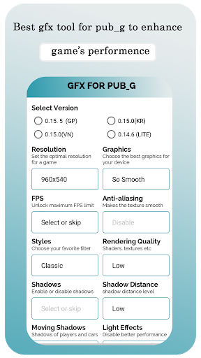 GFX cho PUB_G Đây là một công cụ để tùy chỉnh bạn chơi trò chơi với kết quả tốt hơn.