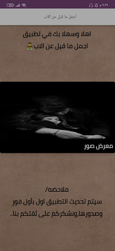 We welcome you to the application أجمل كلام عن الاب The most important and largest among the applications, due to the huge and unique content it provides for the most beautiful what the wise men said, underlining for you their quotes in clear-text texts commensurate with the measurements of the screens of different devices, and with a high-resolution design and excellent quality, in order to be able to share the lessons And the philosophy across the various social media platforms, hurry now to download the أجمل كلام عن الاب application and do not waste the optimal experience on you.