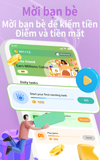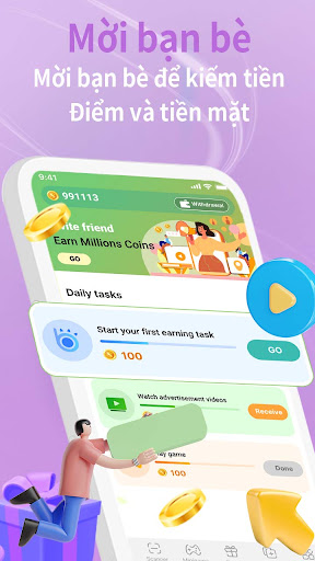 Bạn có thể chia sẻ ứng dụng với bạn bè của mình và mời họ kiếm tiền cùng bạn. Sau khi lời mời thành công, bạn có thể nhận được phần thưởng phong phú.