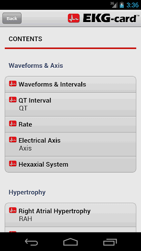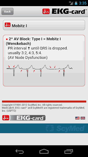 Ứng dụng EKG-Card ™ bao gồm các định nghĩa, dữ liệu và nhiều dải nhịp điệu.