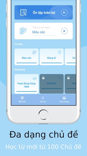Học từ vựng theo 100 chủ đề thú vị, sử dụng nhiều phương pháp học đa dạng, sẽ giúp bạn nhớ được từ mới nhanh chóng. Từ Thẻ học từ mới, Trò chơi luyện nghe tới Câu đố, Vocly sẽ giúp bạn học từ mới dễ dàng.