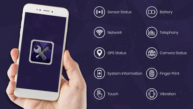 In this app you will be able test and check all the components of the phone. Whether it is Display screen, microphone, speaker, loud speaker, buttons, earphone jack, color display pixels, vibrations, sim slots, WiFi, bluetooth, mobile data, network connections, etc,.