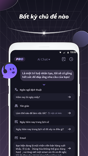 Chatbot - AI Writer Generator dễ sử dụng, cung cấp giao diện đơn giản cho sự hỗ trợ trí tuệ nhân tạo ngay lập tức. Tải xuống ứng dụng được động viên bởi ChatGPT và GPT-4 và có trợ lý ảo của bạn bên cạnh mỗi khi bạn cần.