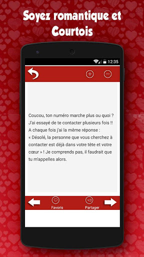 Vous souhaitez écrire un sms d'amour romantique ? En panne d'inspiration pour séduire celui ou celle qui vous fait craquer? Vous souhaitez récupérer votre Ex ? Ou à la recherche des idées de drague sincère pour aborder une femme dans la rue sans te faire rejeter ? Découvrez des centaines de phrases d'accroche et drague ainsi qu'une centaine des sms d'amour grâce à notre nouvelle application entièrement.