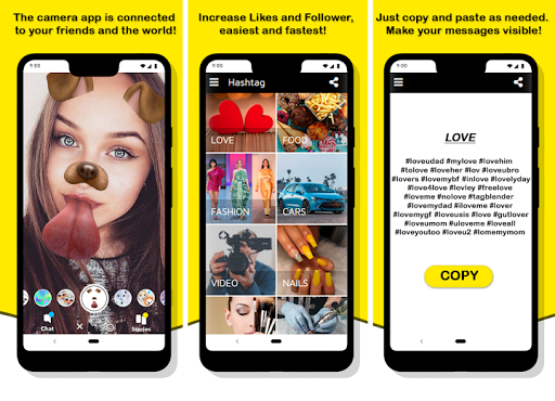 Are you waiting for the best Hashtag app ? You want more hashtag for your post ? Do you want to get more likes and followers ? Use our best Hashtag app for Snapchat video maker with new filters free . It is an app for increase likes and follower for your Snapchat Lite photo editor app , easiest and fastest . This app will help you to increase "likes" of your photos , posts and their rating . Just copy and paste necessary . If you want to promote your account and get more Likes & Followers then Top HashTags for Snapchat emojis and bitmojis app is a must have for you . As we know , the updated new version of Snapchat Messenger 2020 premium version is a new kind of camera that’s connected to your friends and the world . Over 180 million people use it every day to talk , play with music video selfie , learn and take some pictures , too . Our app is designed for old and latest versions . It is always updated . Quick add the most relevant hashtags to your posts to make them visible so you get more likes!