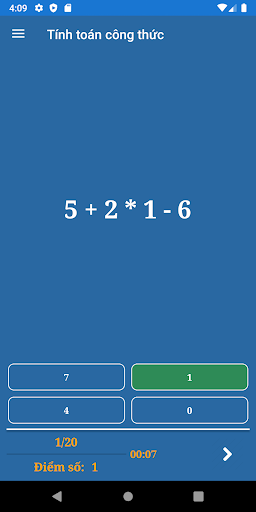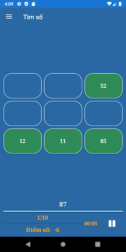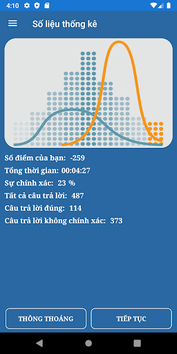 Bạn có thể xem số liệu thống kê bằng cách chọn mục menu trong Menu chính. Thông tin bao gồm tổng điểm, độ chính xác, số câu trả lời đúng và không chính xác.