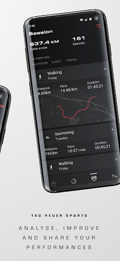 - Tổng quan về các phiên của bạn được theo dõi với Watch Watch Connected của bạn (đang chạy, đi xe đạp, đi bộ, thể dục và khác; Golf sẽ được tư vấn vào th E Ứng dụng Golf Tag Heuer chuyên dụng)
