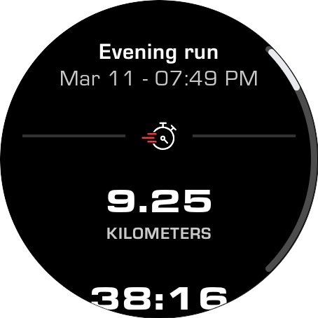 - Nhận chi tiết mở rộng về mỗi phiên, bao gồm: dấu vết, khoảng cách, thời gian, tốc độ hoặc tốc độ, nhịp tim, calo và chia