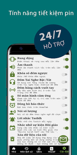 • Đếm dhikr bằng bộ đếm zikr trong tab trang chủ.