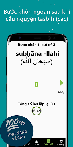• Một loạt các hộp thoại giúp bạn học cách sử dụng ứng dụng bộ đếm tasbi.