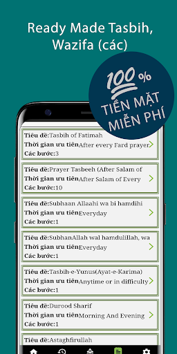 • Tasbeeh Counter Lite có thể đưa bạn đi qua cấu trúc phức tạp của wazifas nhiều bước (chuỗi tasbeeh) mà không cần nỗ lực nào, ví dụ: tasbeeh Fatimah AL-Zahra