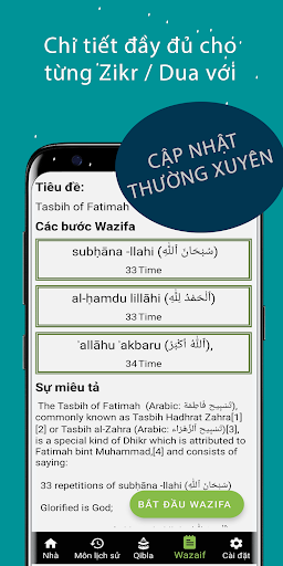 (تسبیحةالزھراء / تسبیح فاطمہ الزھرا). Đối với mỗi bước (tasbeeh) trong wazifa (chuỗi tasbeeh), Nó hiển thị văn bản để đọc thuộc lòng và lặp lại để làm cho các chuỗi tasbeeh phức tạp trở nên đơn giản.