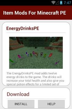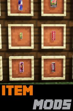 Item Mods For Minecraft PE adds twelve energy drinks to the game. The drinks will increase your total health and also give you special potion effects for a limited set of time. Experience everything from extra strength to the ability to jump super high.
