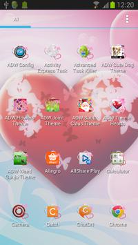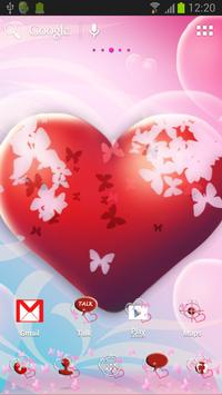 Hình nền chủ đề cho thấy trái tim màu đỏ lớn ở giữa với bướm hồng trên nền màu xanh và màu hồng với màu trắng. Xung quanh là nhỏ hơn trái tim màu trắng trong suốt. Nền của ứng dụng trình đơn chính cũng là trái tim lớn. Mỗi biểu tượng chứa trái tim màu trắng và đỏ trong nền. Một số biểu tượng có Bid thay đổi sang màu đỏ. Trên nền tảng chính-dưới biểu tượng thanh-bay bướm màu hồng. Nếu bạn thích này ứng dụng kiểm tra ứng dụng khác với cùng một motif tương tự.