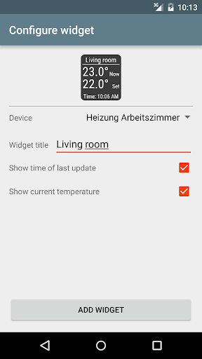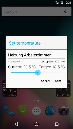 - Configurable widgets for the Android home screen that show the temperature at all time and allow adjustment of the target temperature and switching of outlets without having to start the application
