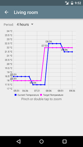 - Diagrams showing the temperature history for each thermostat (current and target)