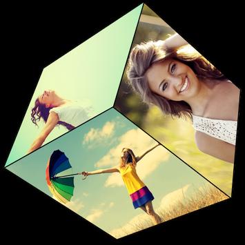 You set photo in the cube and also give your photo to different effect.